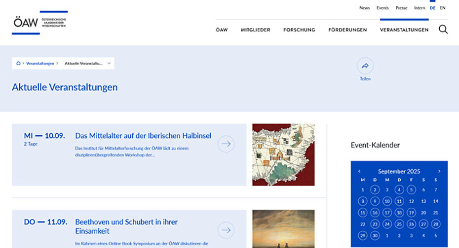 Im Projekt „ÖAW Plattform“ haben wir die bestehende Website der Österreichischen Akademie der Wissenschaften (ÖAW) umfassend neu konzipiert und gestaltet. Ziel war es, eine moderne, benutzerfreundliche und responsive Online-Präsenz zu schaffen, die sich nahtlos an verschiedene Endgeräte anpasst und eine optimale Nutzererfahrung bietet.